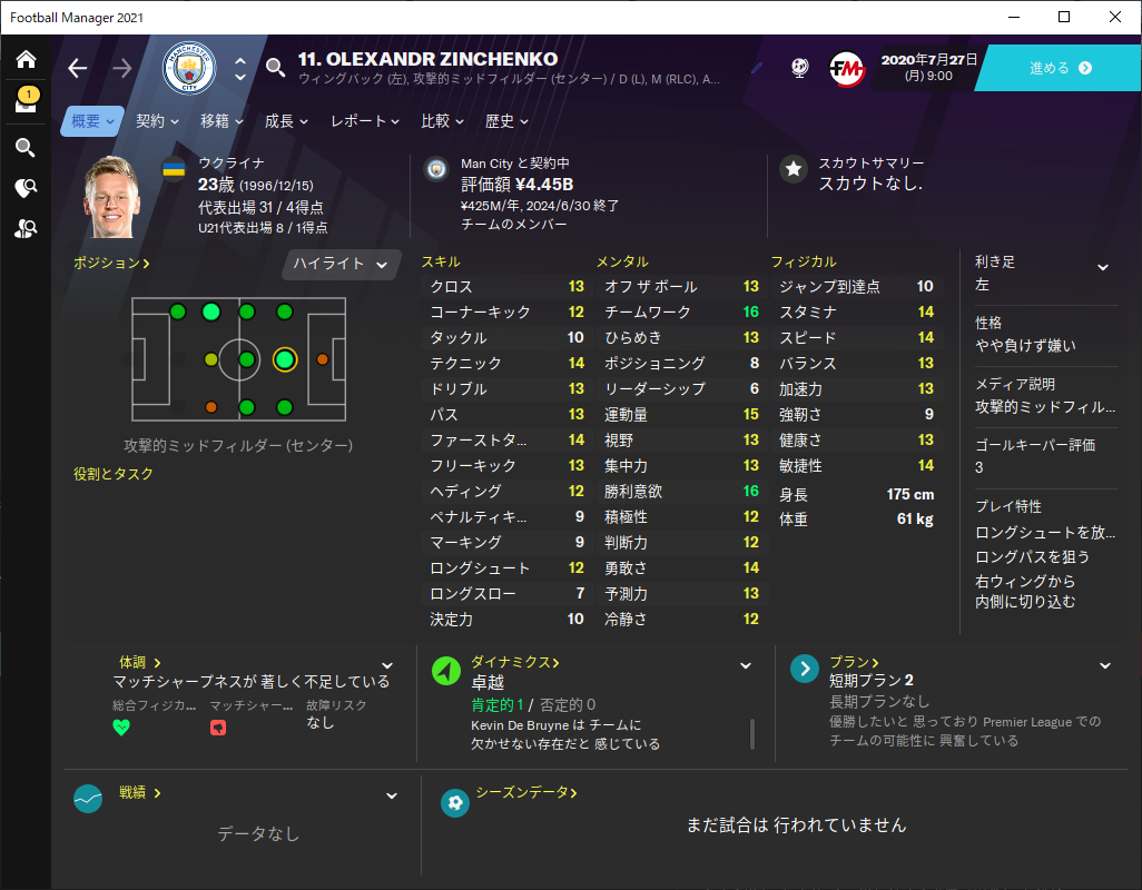 優秀な選手であっても試合に出ないと意味がないので、この値が高い選手はできるだけ雇うのを避けたほうがよく、雇った場合もバックアップを充実させておいたほうが良いでしょう。